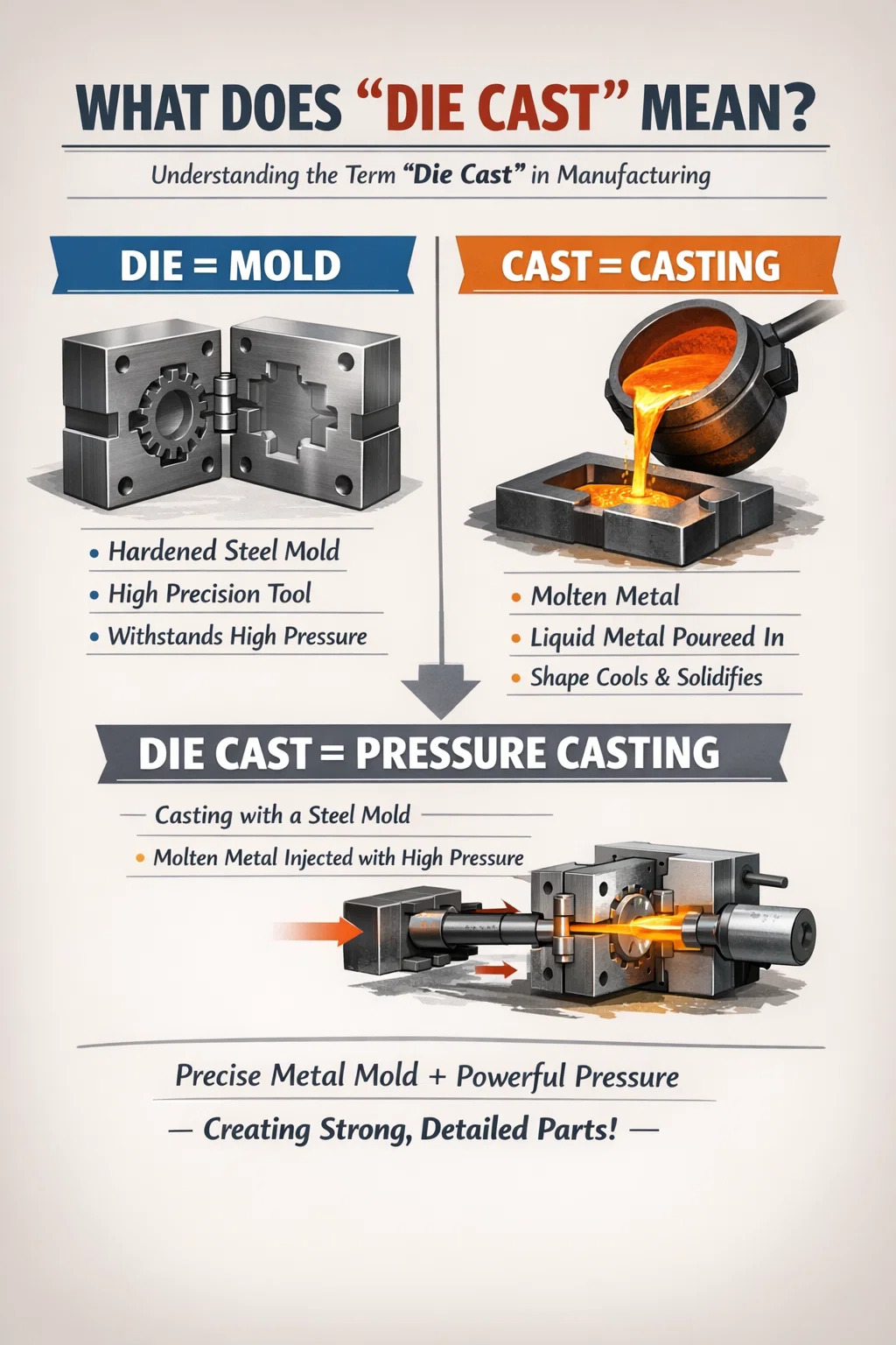 Combinando essas duas palavras em "fundição sob pressão", o significado central é: experiências sob pressão usando um molde de metal preciso.